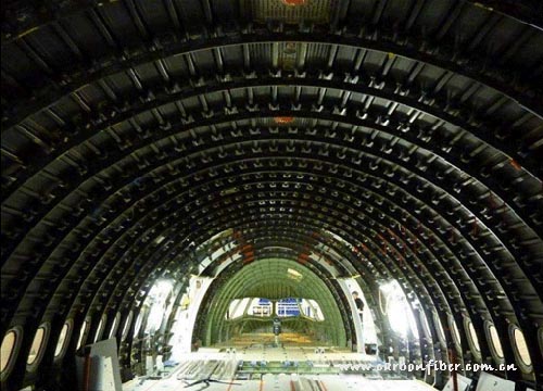 首個A350XWB前機身內部構造。前機身結構采用碳纖維復合材料,正在法國圣納澤爾工廠進行組裝。