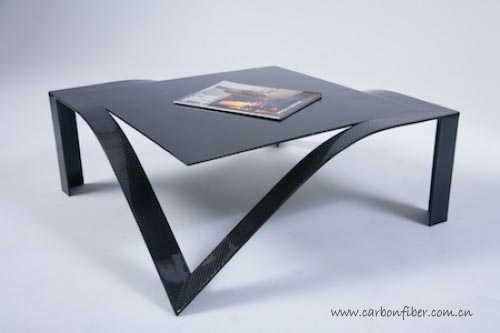 把兩個對角切割向下彎曲,形成其中兩條桌角。這就是法國設計師Pierre Lota帶來的碳纖維Plane咖啡桌,用料節省造型美觀。 法國設計師Pierre Lota