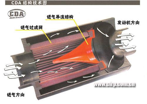 外觀采用了碳纖維材質制作,用碳纖維有兩點好處,一是減輕了重量,對于改裝重量是最大的敵人,二是耐高溫效果優異。外觀五顆星。內部材質采用了特質纖維綿,紅色的纖維棉可以使空氣流量加大,同時還可以過濾比原車空濾更多的雜質使得進氣質量得到提高。內部錐形設計可以使空氣在風箱里形成渦流,渦流的形成可以使更多的空氣以更快速度進入發動機內。內部材質5顆星。