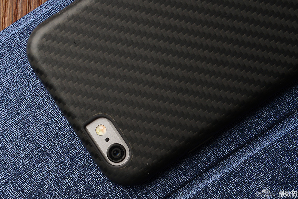 Evutec Karbon Sl保護(hù)套的厚度大概有1.5毫米左右,或許不算很薄,但大家都知道iPhone 6有一個(gè)比較煩人的地方,就是它那顆突起的攝像頭,套上Evutec Karbon Sl保護(hù)套以后背部恰好略微高出于攝像頭,平放在桌面上再也不用擔(dān)心會(huì)磨損攝像頭,影響成像效果了。