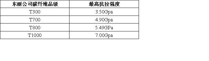 表1 東麗公司碳纖維品級性能表