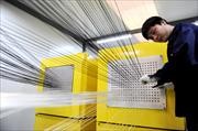 工人在碳纖維復合芯導線生產線上緊張工作。江蘇連云港中復碳芯電纜科技有限公司是專業從事碳纖維復合材料芯導線開發和生產的企業,第一條碳纖維復合芯導線生產線目前已經成功投產,年生產能力達到2萬公里,填補了碳纖維電纜在國內電力領域大規模應用的空白。
