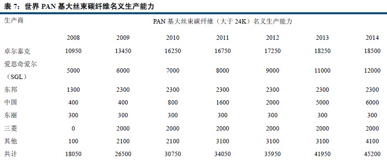 從國外對世界大絲束碳纖維生產(chǎn)能力的增長預(yù)測來看,大絲束碳纖維遠(yuǎn)高于小絲束碳纖維。從兩者生產(chǎn)能力比例來看,趨勢也是不斷下降的,即小絲束碳纖維世界生產(chǎn)能力在世界總產(chǎn)能的份額不斷降低。大絲束纖維的應(yīng)用會進(jìn)一步擴(kuò)大,而且會以較快速率擴(kuò)大。 123,123