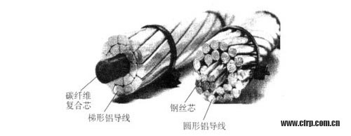 圖1:碳纖維復(fù)合鋁絞電纜(左)和鋼芯鋁絞電纜(右)