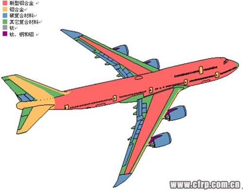 被叫做空中巨無霸的大型客機空客A380,約有25%由先進輕質復合材料制造,其中22%為碳、玻璃或者石英纖維增強塑料,3%為GLARE(一種玻璃纖維―鋁層壓板)材料。
