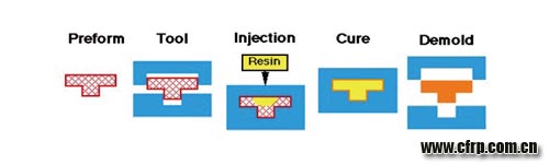 該工藝是將纖維經預成型,預編織處理,纖維鋪放可設計,制品受力合理。預成型纖維體預先鋪放在模具型腔內,合模后通過設備用壓力將樹脂注入模腔,浸潤纖維,固化成型,閉模操作,不污染環境,采用多模,多工位機械注射模式,生產效率較高。需要樹脂灌注設備及多套模具,適于中等至大批量生產方式,制品雙面光,尺寸精度高,可做結構復雜零件及鑲件,如汽車地板、車頂、發動機罩等,是汽車行業應用最廣泛的工藝。