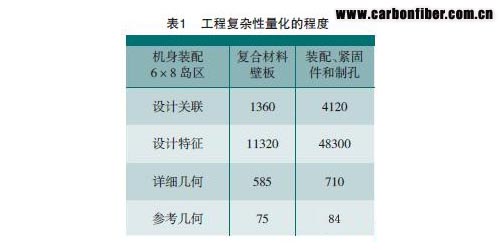 事實上,我們嘗試著量化大型航空結構復合材料壁板的復雜性。舉個例子,對于一個由桁條和框分割的包含6×8 個島區的典型商用飛機的的航空壁板,得到如表1 所示的一組統計數字。創建了幾何參考并且保留在CAD 環境中。細節的幾何元素手動創建但沒有在三維CAD 環境中提交并確認。除了幾何數據,對于復合材料蒙皮有11320 個非幾何特征,對于裝配件、緊固件、孔等有48300 個非幾何特征。這些特征不屬于三維CAD 或者PLM 的一部分。另外,這些關系沒有在三維CAD 或者PLM 中捕獲,也沒有在設計意圖中體現。在CAD 和PLM 軟件中有超過90% 的數據沒有捕獲并且沒有有效管理。 本文來自123