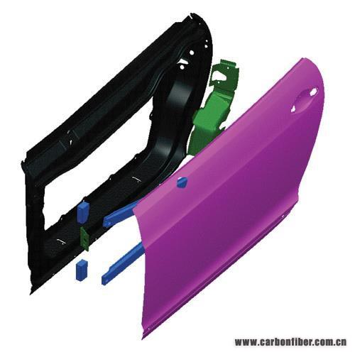 圖3 作為汽車復合材料領域的資深專家,Antony Dodworth表示,將碳纖維復合材料整合到轎車或卡車中的最大障礙主要發生在設計和工程開發階段。例如,一個復合材料的車門(上圖),能夠使用比金屬車門(下圖)少得多的部件被設計和制造出來