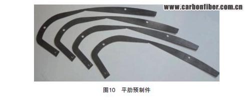 這個(gè)始于福克內(nèi)部產(chǎn)品改進(jìn)實(shí)踐的產(chǎn)品研發(fā)技術(shù),現(xiàn)在成為一個(gè)名為COALESCE(低成本高效率先進(jìn)前緣結(jié)構(gòu))的歐洲框架項(xiàng)目的一部分。新型前緣是一個(gè)多肋薄蒙皮設(shè)計(jì)。肋為平板預(yù)制件(圖10),在產(chǎn)品熔化(共固結(jié))過程中對(duì)接到蒙皮上。蒙皮在一副陽模上用纖維鋪放而成。2 部分同時(shí)制造,接合處由1塊真空袋網(wǎng)膜板覆蓋,然后共固結(jié)。 123456