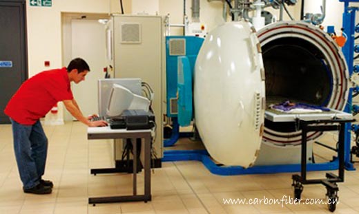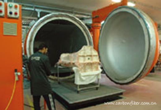 預浸料/熱壓罐成型工藝的優點是:施工簡便,對工人的技能要求不高,生產效率高,制品質量穩定且強度高,因此,該工藝已成為汽車結構件的主流生產技術。需要說明的是,在熱壓罐中固化成型的制品與在固化爐中成型的制品相比,其致密性更高。這是因為熱壓罐可同時加熱加壓,其施加的壓力通常為2~3個大氣壓,而固化爐則不能施壓,這使得在熱壓罐中成型的制品具有更高的致密度,其強度性能更好,因而更適合于主結構件的成型。對于次結構件而言,固化爐成型完全可滿足其強度和質量要求。當然,熱壓罐的成本幾乎為固化爐的2~3倍。