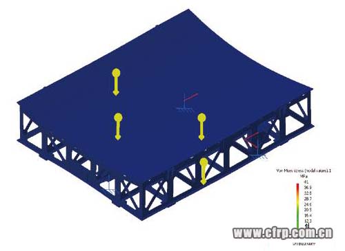 目前國內的復合材料成型模具一般都是通過保守估計的方法設計,沒有通過強度分析優化,這樣設計出來的模具,特別是大型制件的模具,通常都非常笨重,不僅耗費大量材料,因熱容量升高也可能影響到固化反應,同時對運輸、使用過程的相關設備噸位要求很高,大大增加了成本,甚至影響了制造能力。因此,減重是模具設計優化的一個重要方面。減重的方法必須要通過合理的計算,否則會直接影響到模具的強度和剛度,導致使用過程中產生變形而影響制件質量。同時,對于吊環、輪子、撐腳也需要進行強度校核,以確保模具能夠安全地起吊和轉運。