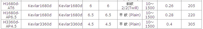 芳綸纖維布技術參數