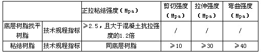配套樹脂粘結材料的主要力學性能指標: