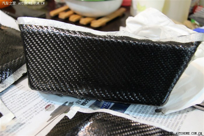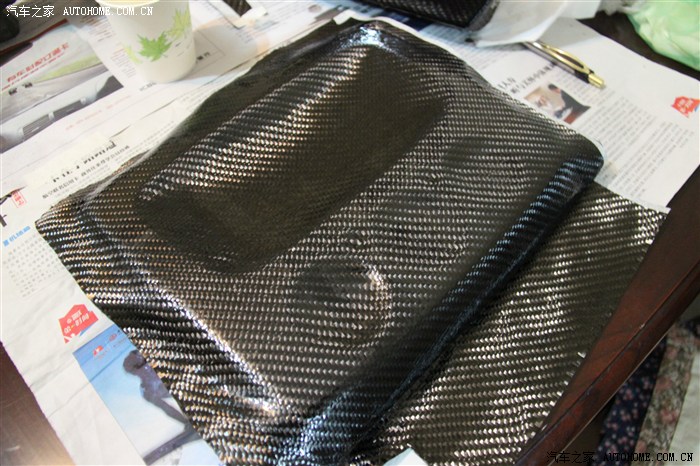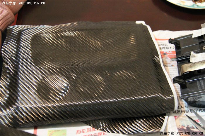 覆蓋碳纖維布的時候要注意,不能用手指用力按表面,否則碳纖維布的纖維很容易被弄亂,弄亂了就不好玩了。。。