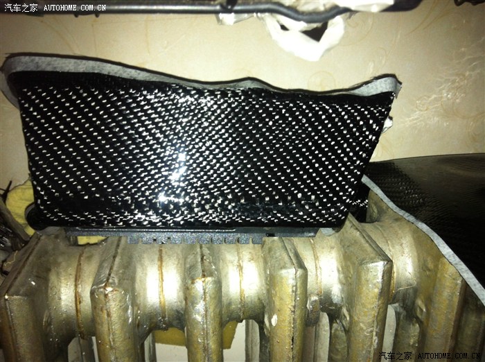 正確的方法是,用手掌輕輕按壓,確保碳纖維布和被覆蓋件的表面完全接觸上,四件都蓋好之后,今天的工作就可以結束了,把這四件放到暖氣上就可以收工。(東北冬天就這點好,室內有暖氣)