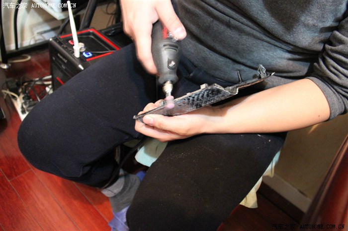 1. 用電磨摳孔打磨的時候,一定要穿長袖的衣服,袖口扎緊,并且帶上口罩,切記帶上口罩。上圖我就因為熱,把袖子挽起來了,結果打磨的粉塵落在了我手臂上,弄得我很癢。不過解決方法我也找到了,就是用搓澡巾濕巾搓吧。